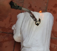 Lo segundo, las fuentes de calor (soldador pequeño de gas, que funde estaño a unos 200º aprox. y soplete industrial que genera unos 1000 grados Centígrados).